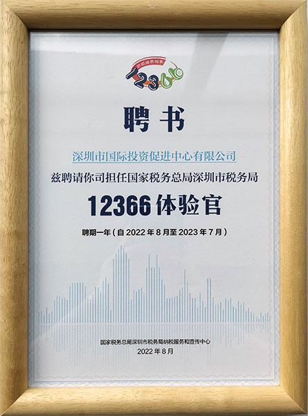 2022年,被国家税务总局深圳市税务局聘为“12366体验官”。
